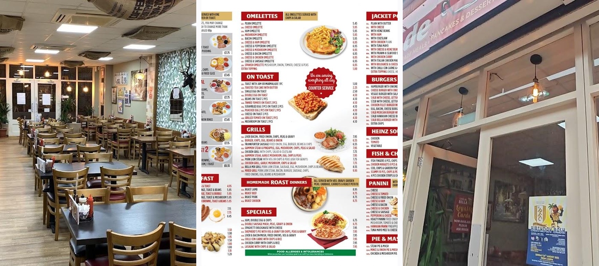 The menu features a diverse range, including breakfast classics, burgers, homemade roast dinners, and delightful desserts. You'll find something for every taste.